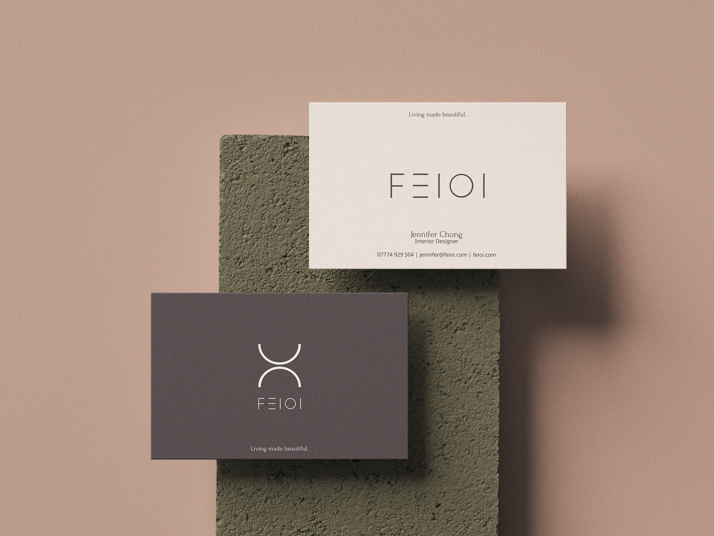 The aim of Feioi’s new brand identity was to feel effortlessly cool while remaining warm and welcoming. Jen wanted her brand to reflect how she “brings love into every home” through her work (without leaning into anything too literal or cliché).