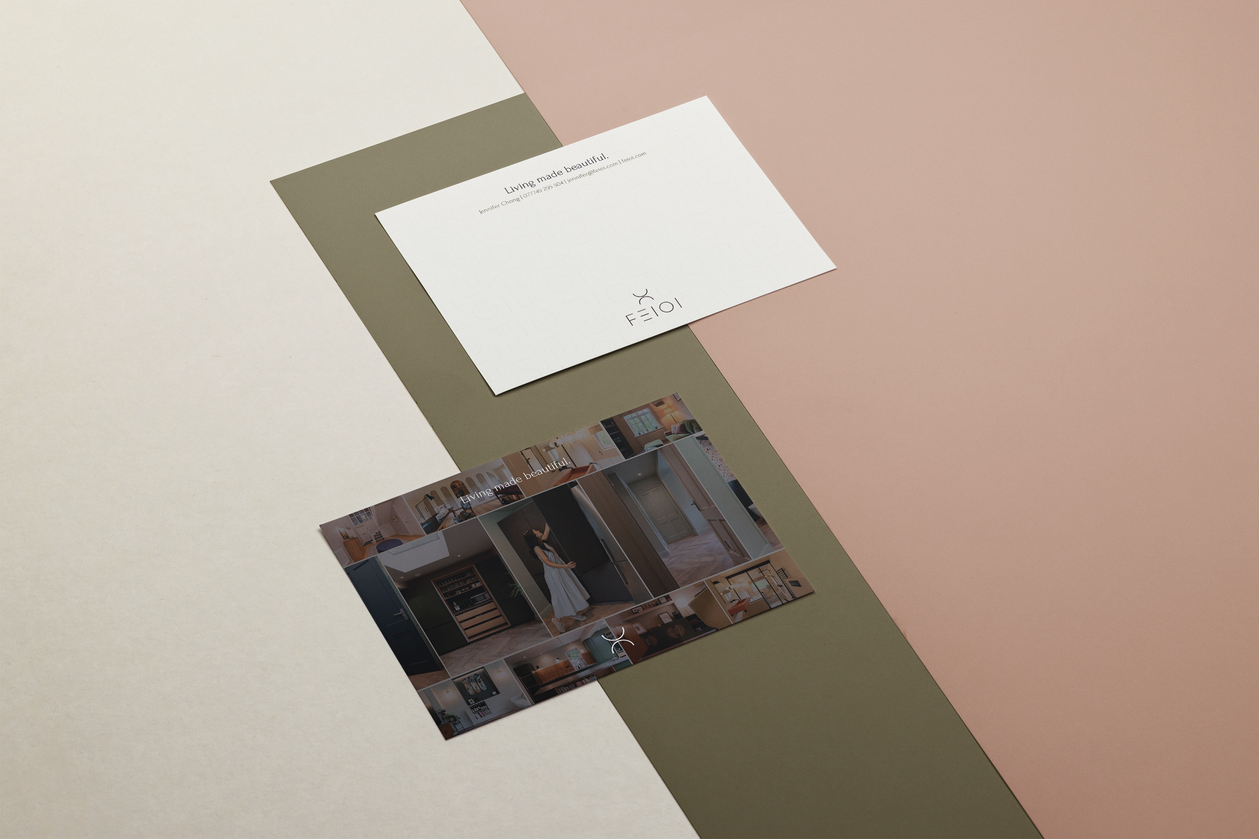 This project brought together brand identity, digital design, copy and photography into one cohesive system that reflects how Jen works and who she works for. By collaborating across disciplines and managing the project as a single, joined-up process, we were able to create a brand that feels consistent, considered and ready to grow with the business. The result is a brand for Feioi that feels as personal and intentional as the interiors Jen creates and is a clear example of how The Collab Club brings together the right people to deliver thoughtful, end-to-end brands for businesses.